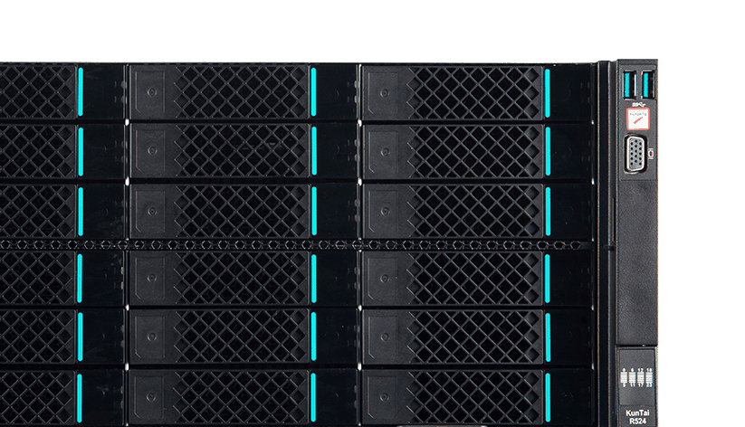KunTai R524 存储型服务器是德晋贵宾厅数码基于鲲鹏处理器推出的新一代 ARM数据中心服务器。。。。主要面向存储业务,,,具有海量存储、、高性能、、、低功耗以及易扩展的特点,,,,适合为大数据分析、、软件定义存 储等应用场景的工作负载进行髙效加速。。。。